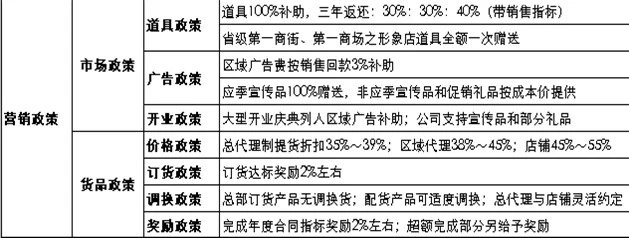 闽南男装的营销政策一般制定得细密而周全,如某品牌2005年的政策: