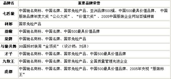 福建成功的男装,绝大多数荣誉等身(如图所示)。这些荣誉对于它们早期的招商及终端零售可谓是一张张的王牌。这与政府的观念及营造的环境不无关系。福建企业,特别是泉州地区的服装鞋品,对于企业荣誉和形象的追求,如进京赶考一般重视,因此硕果累累。